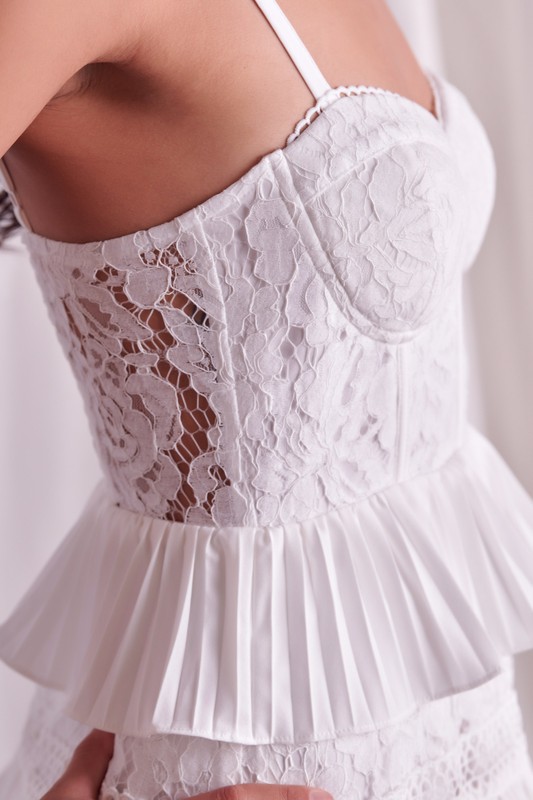 Beautiful layered dress with lace and ruffle detail! Back zipper and adjustable straps. True to size. All sales final.
