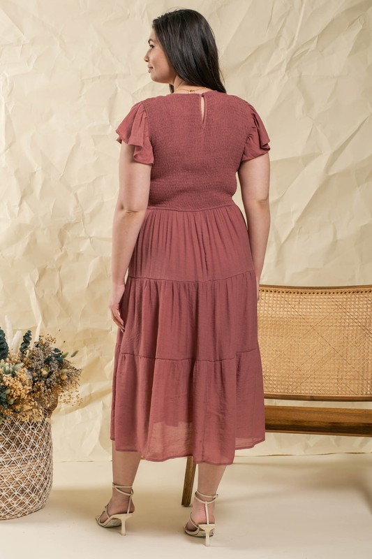 Smocked top for the perfect fit. Tiered flowy bottom. Button closure. True to size. All sales final.