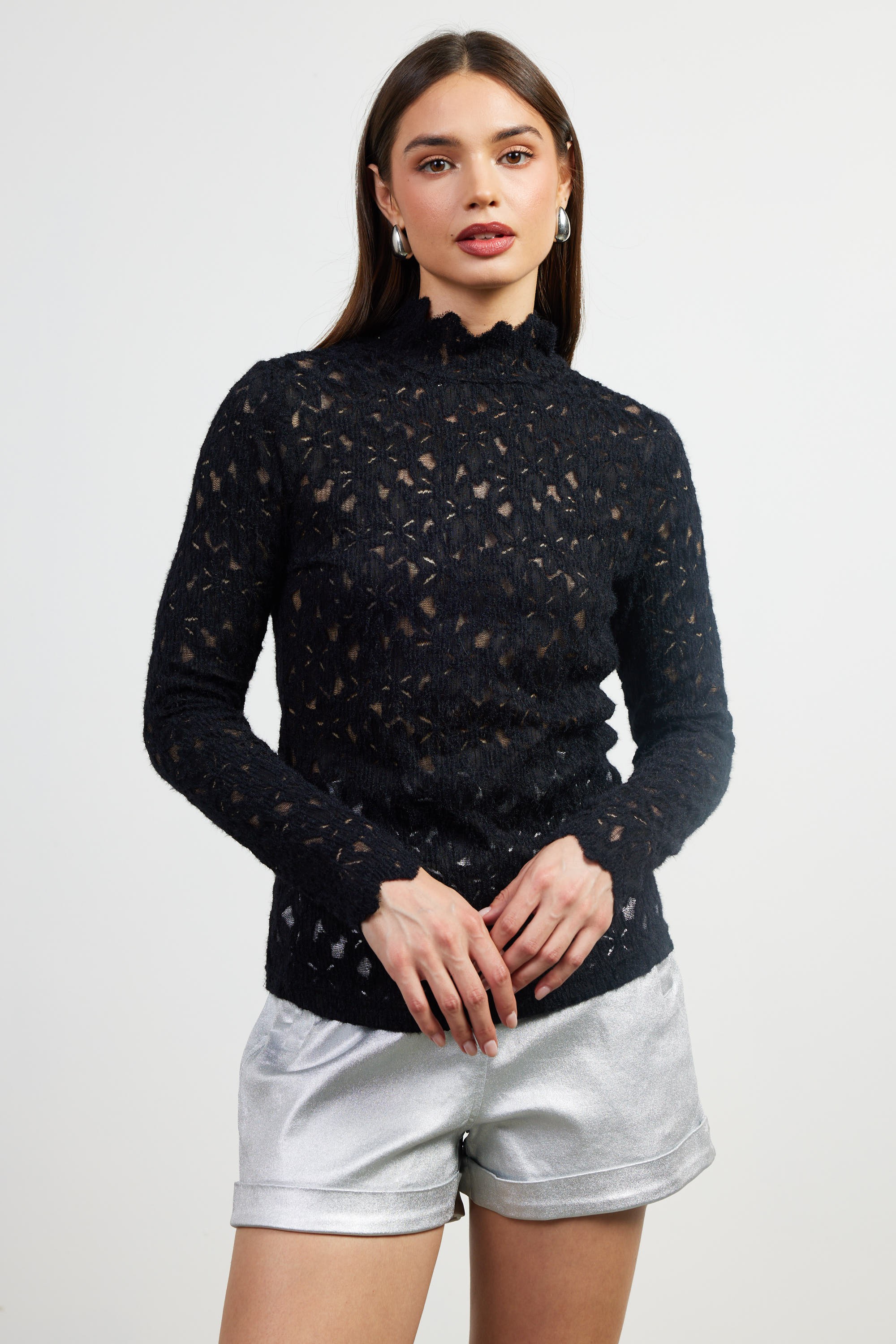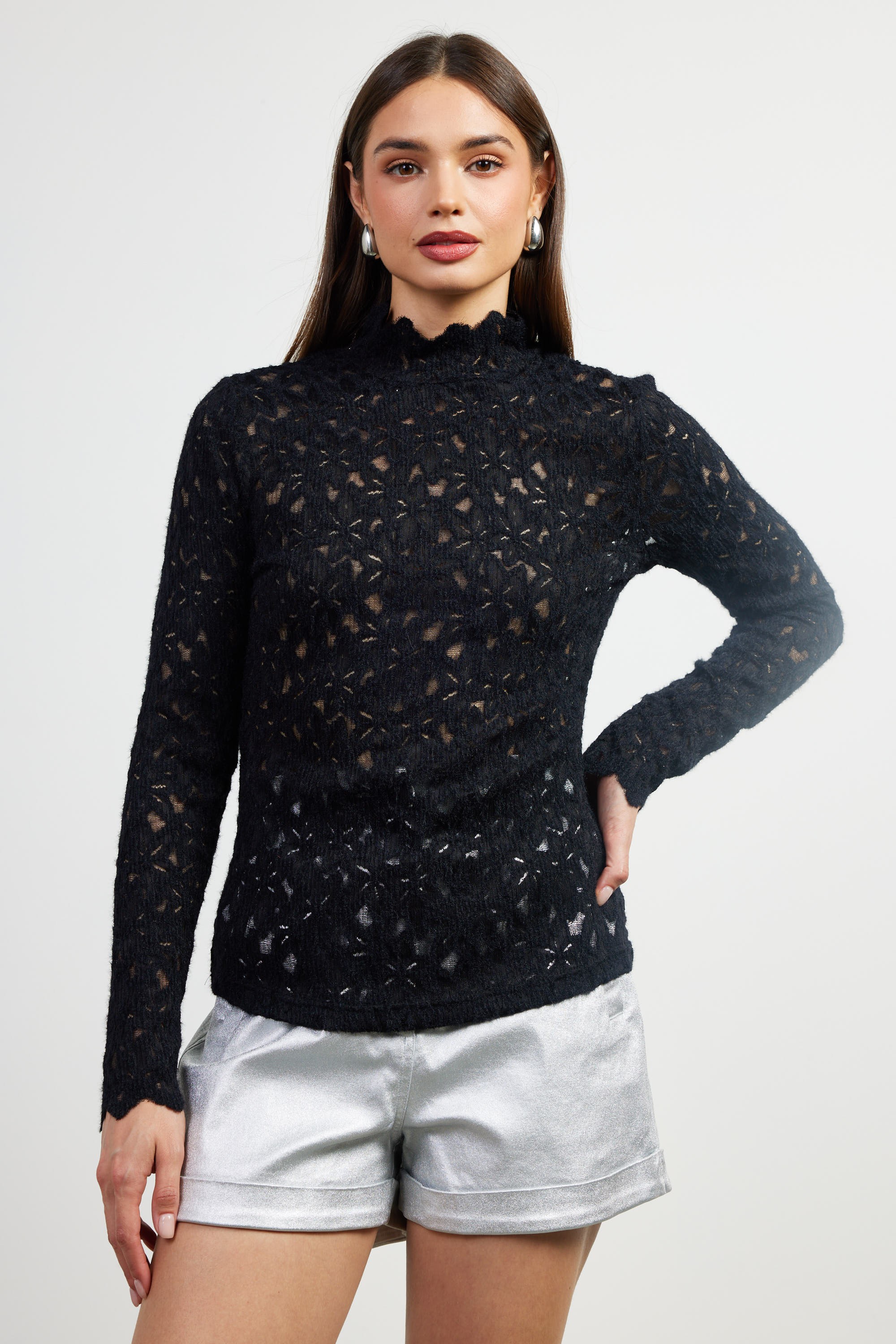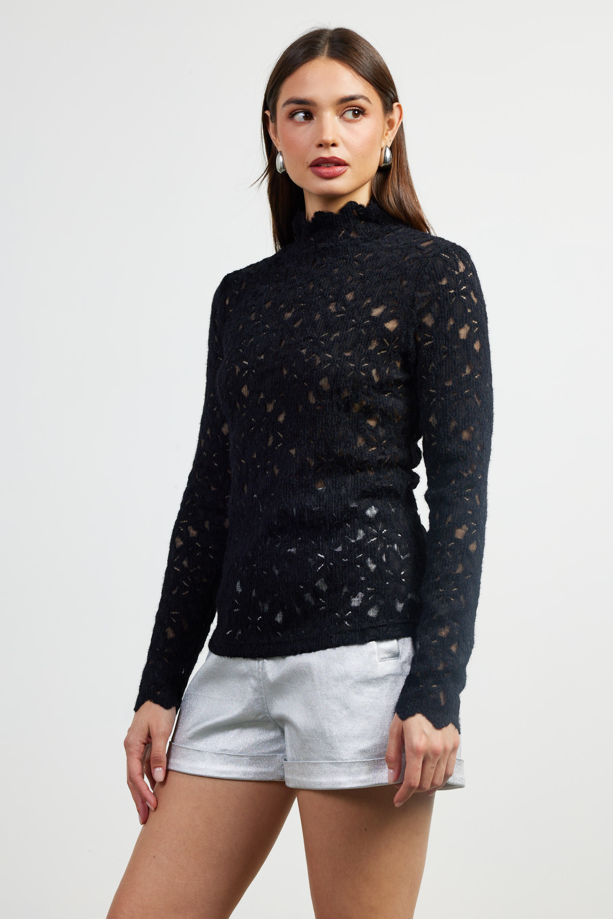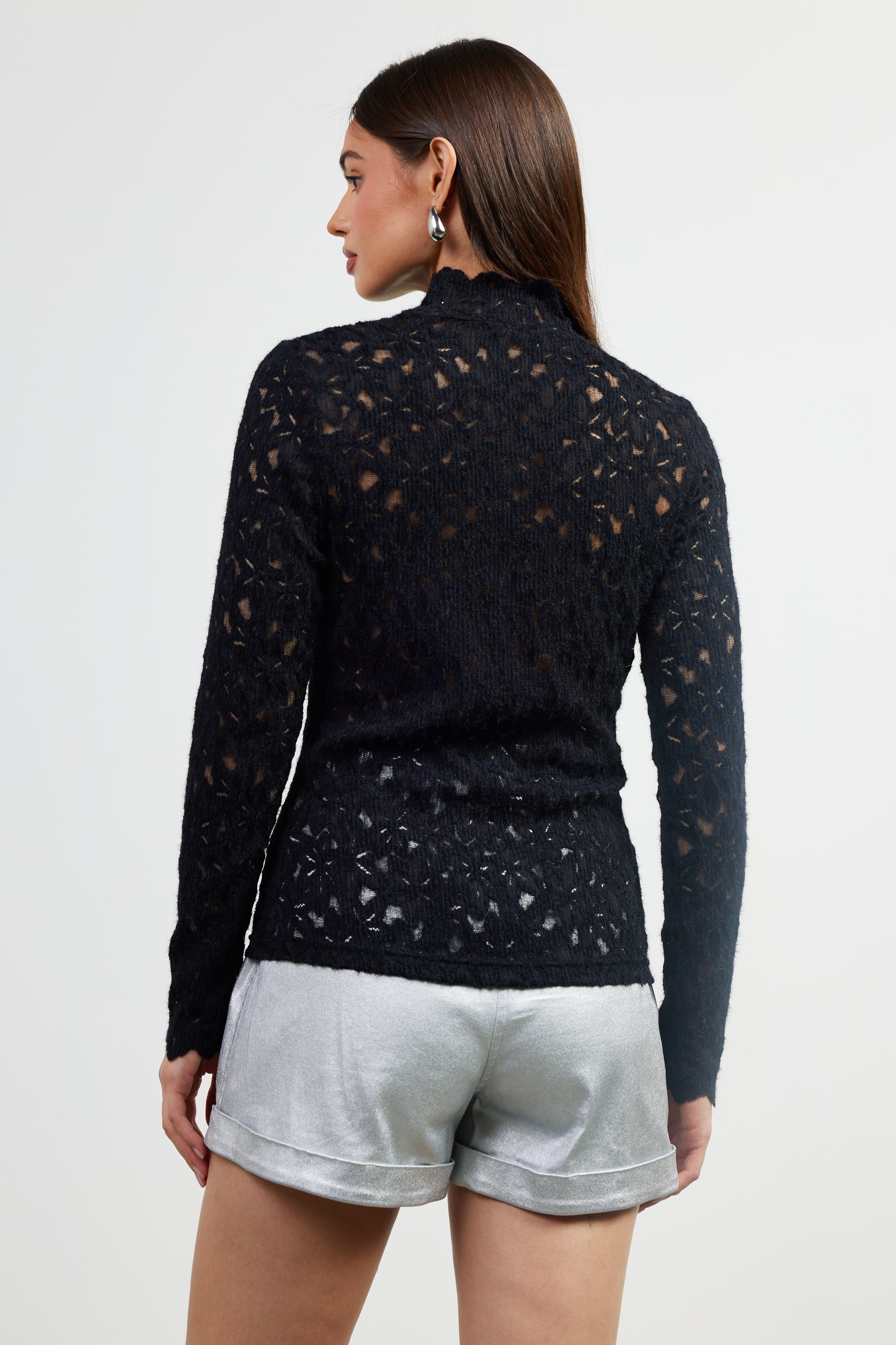 Lace Pattern Mock Neck Top