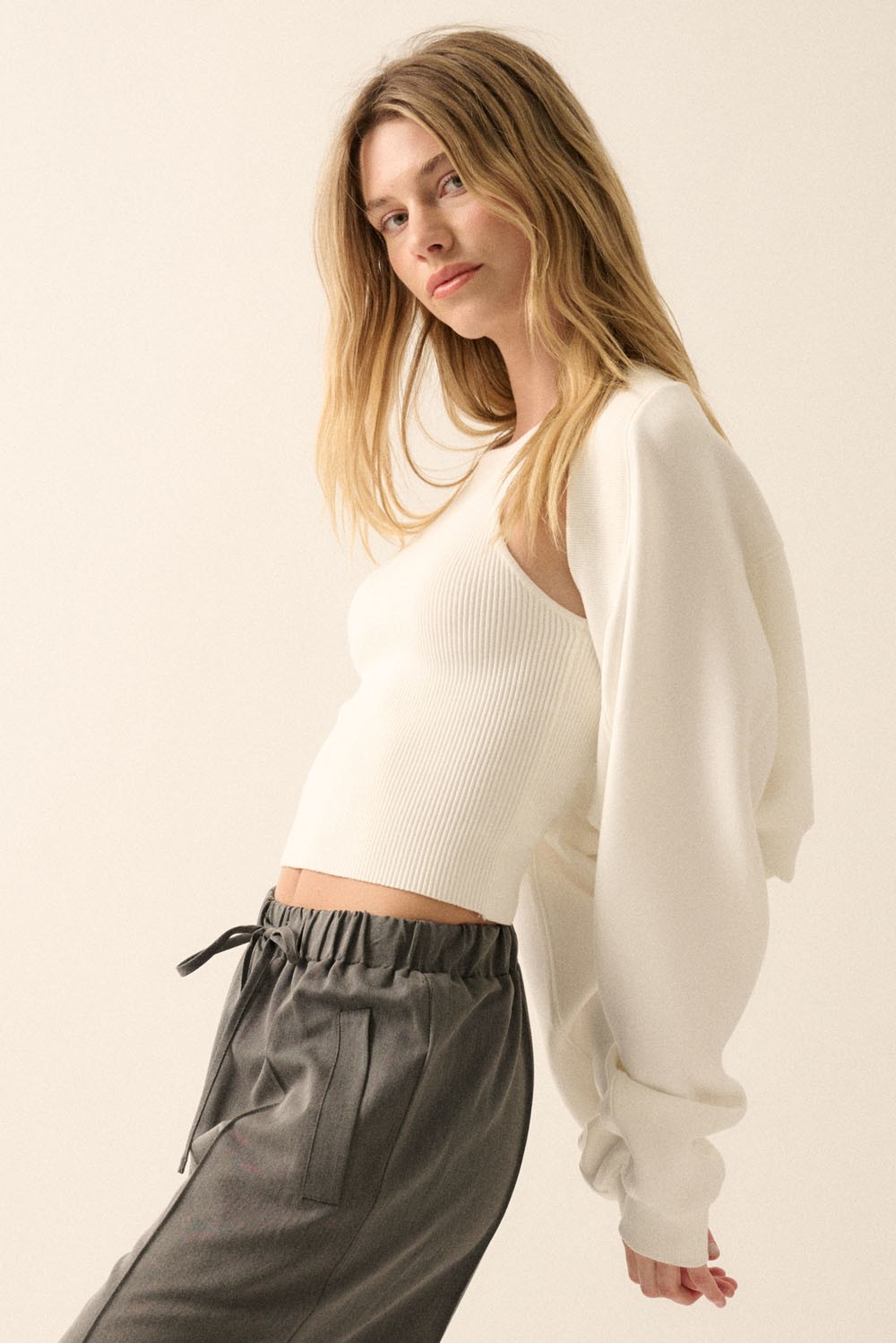 Cute little cardigan to layer over a dress or tank. Cropped fit. All Sales Final.