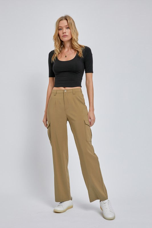 Soft scoop neck tee with double layered fabric. Perfect to layer with everything- skirts, denim, cardigans, blazers. Cropped length and fitted. All sales final.