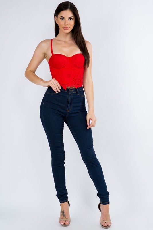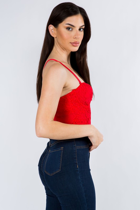 Crochet lace corset with eyelet closure up the back. Adjustable and removable straps. Fitted silhouette. All sales final.
