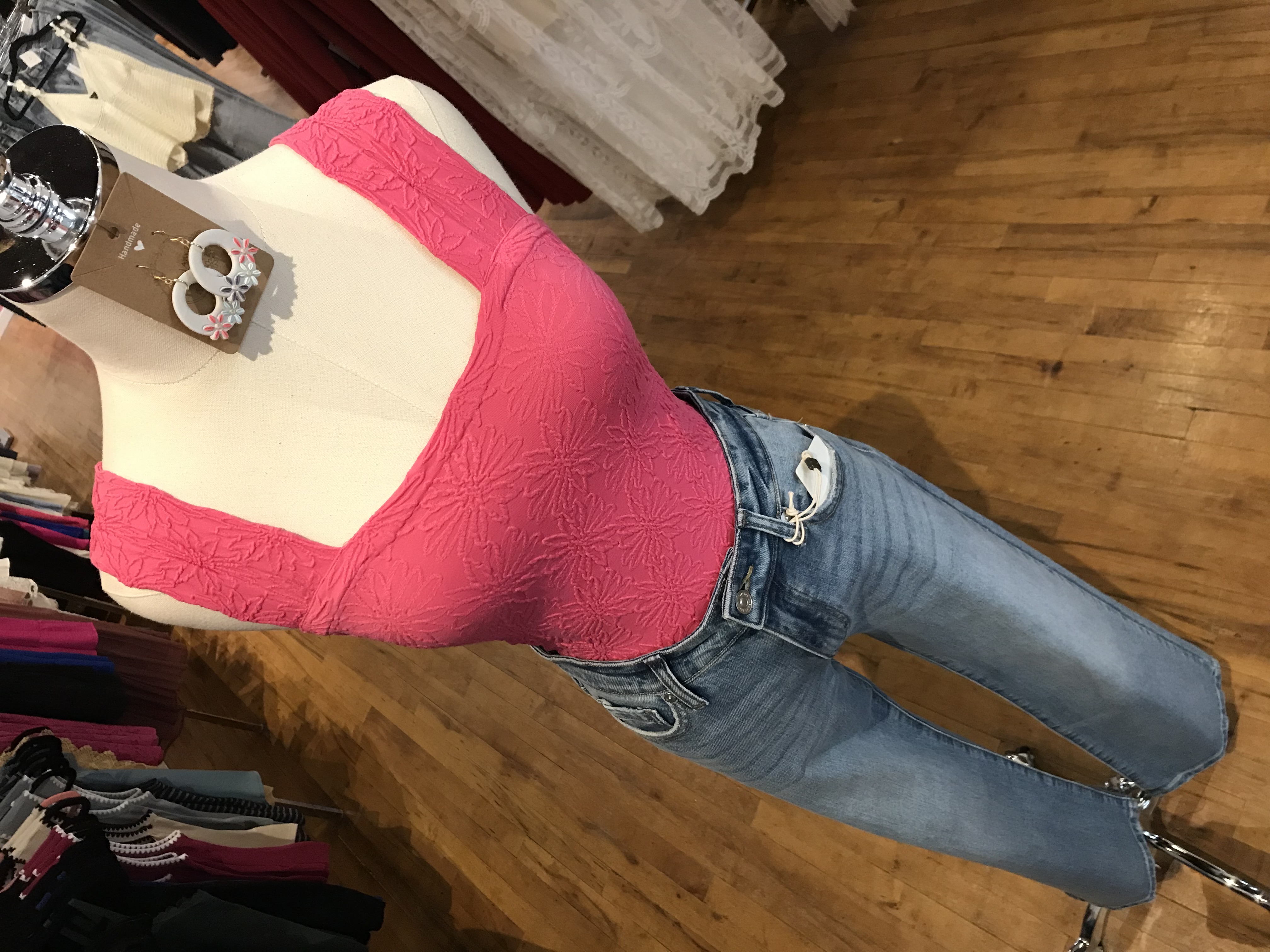 Stretchy knit floral tank wtih wide straps. Adorable layering piece. Fitted. All sales final.