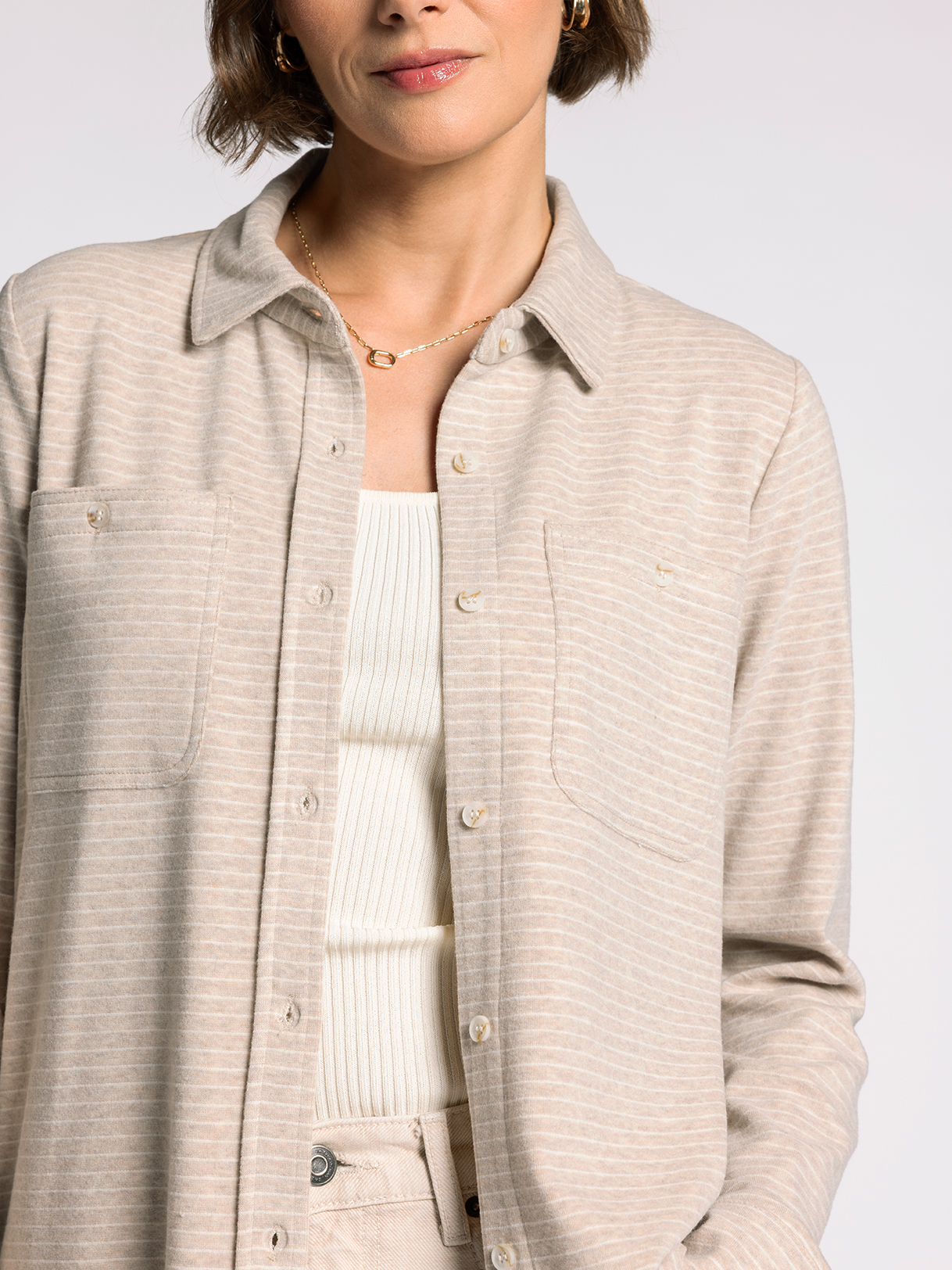 The softest shacket you will find. Collared neckline, button front closure and front pockets. All sales final.