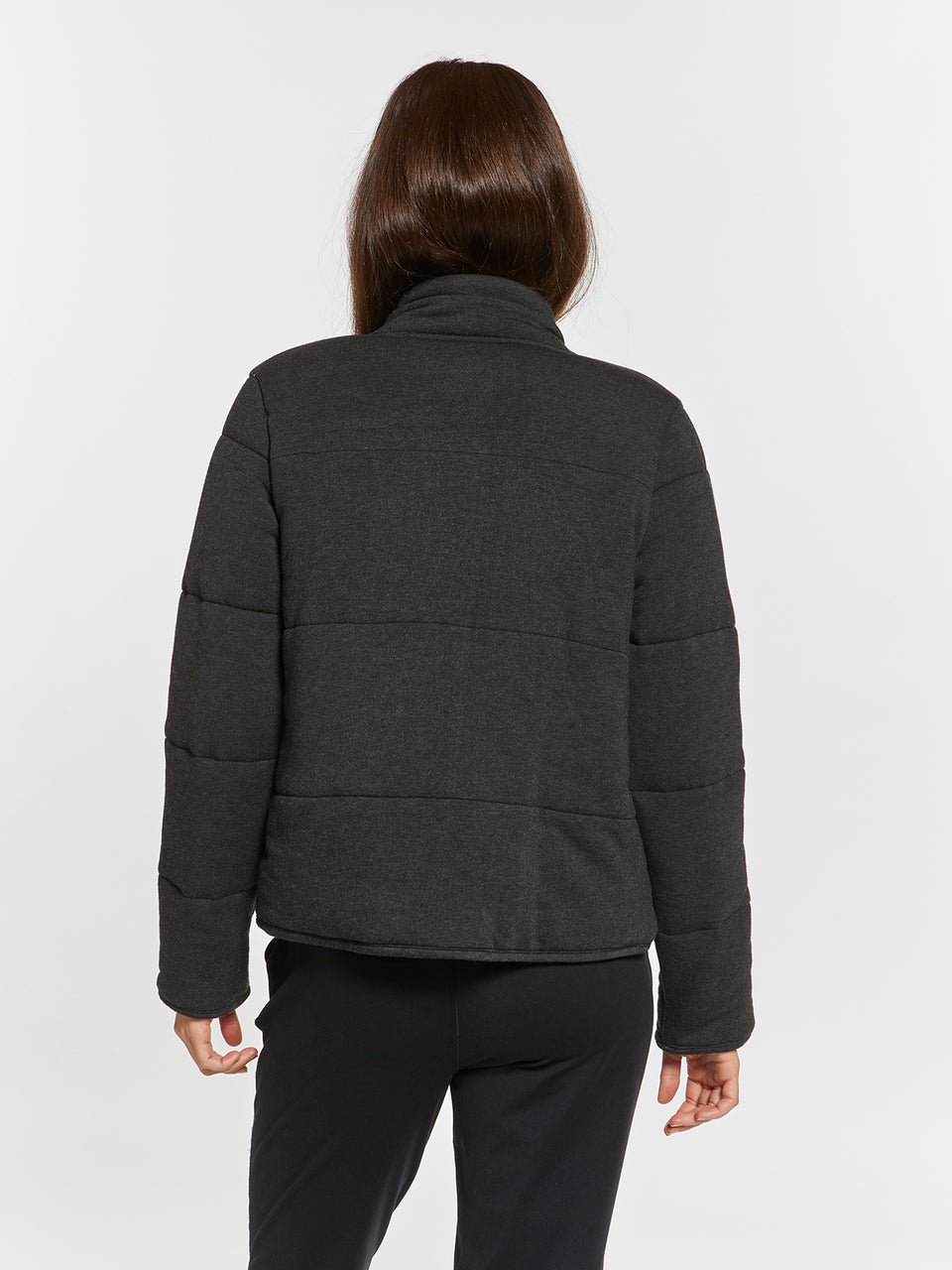 Cozy, soft jacket with zipper closure in black heather. Side pockets. True to size. All sales final.