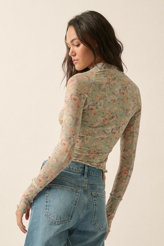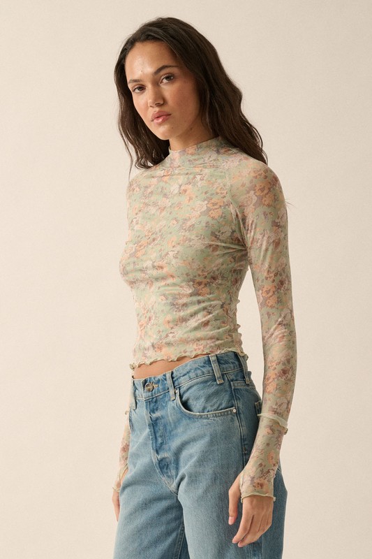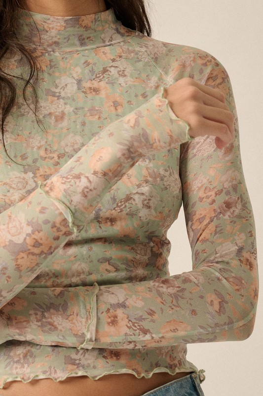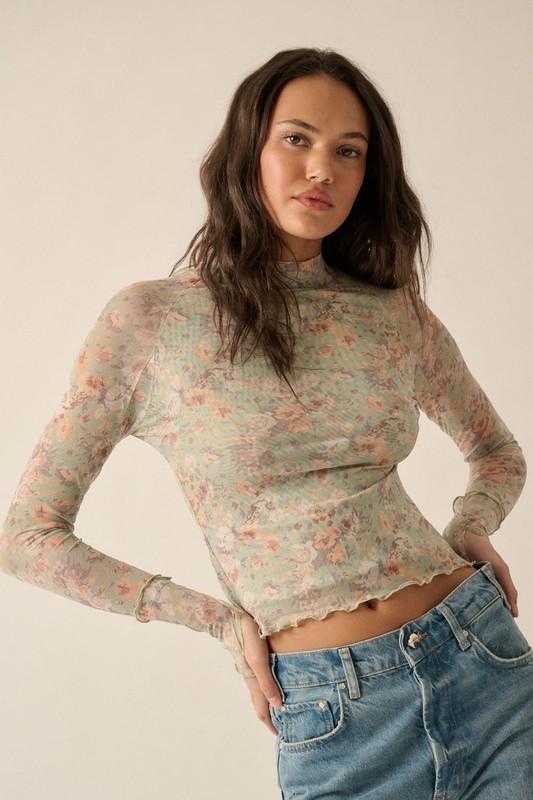Beautiful printed mesh long sleeve top. Great piece to tuck with high waisted denim. Lined so you don't have to wear an under shirt. Fitted. All sales final.