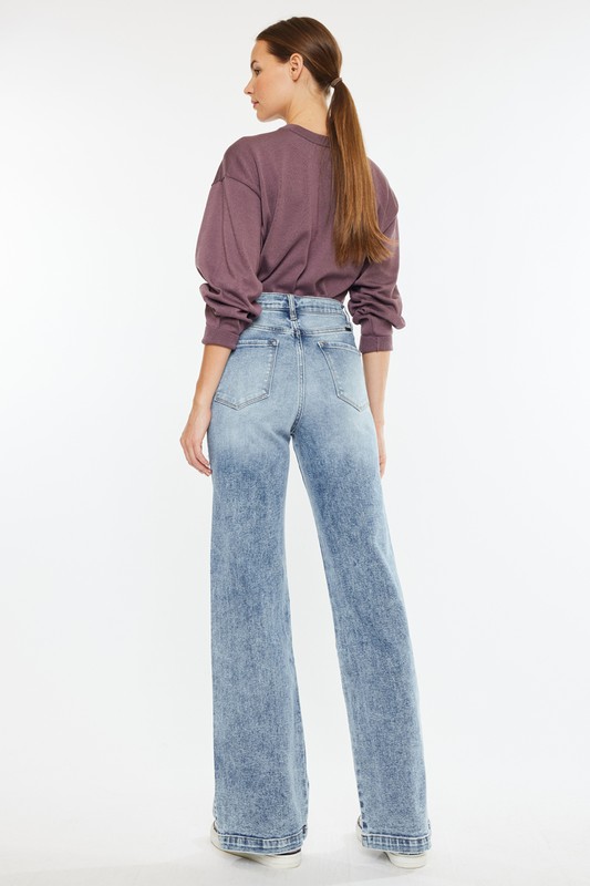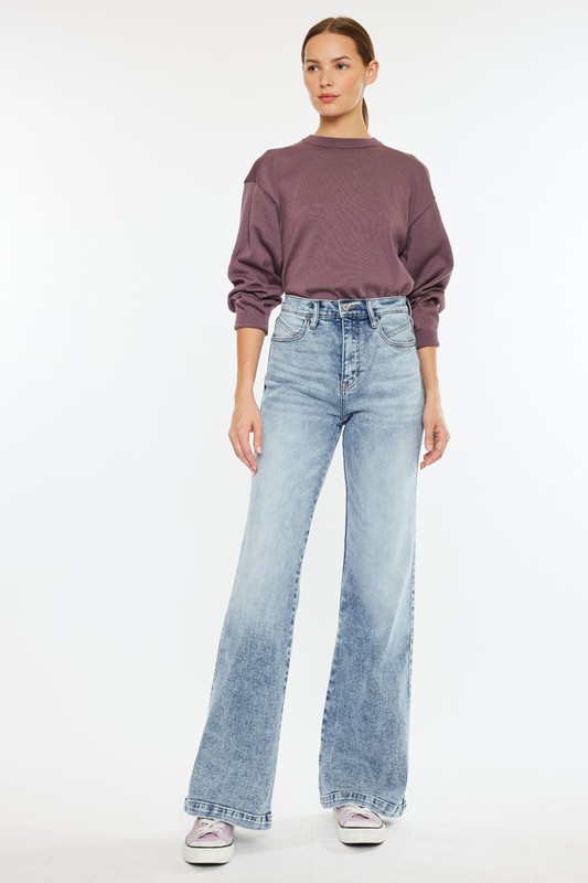 Ultra high rise with soft and stretchy fabric in medium wash. Flare leg with no distressing. 11.5” rise. 33” inseam. ALL SALES FINAL.